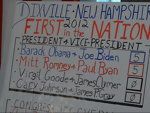 In Dixville Notch, New Hampshire, a small village which traditionally opens its polling places just after midnight - the first vote in the nation - Romney and Obama tied, 5-5. It was the first tie in more than 50 years of midnight voting in the town, which is not a bellwether for the national result.